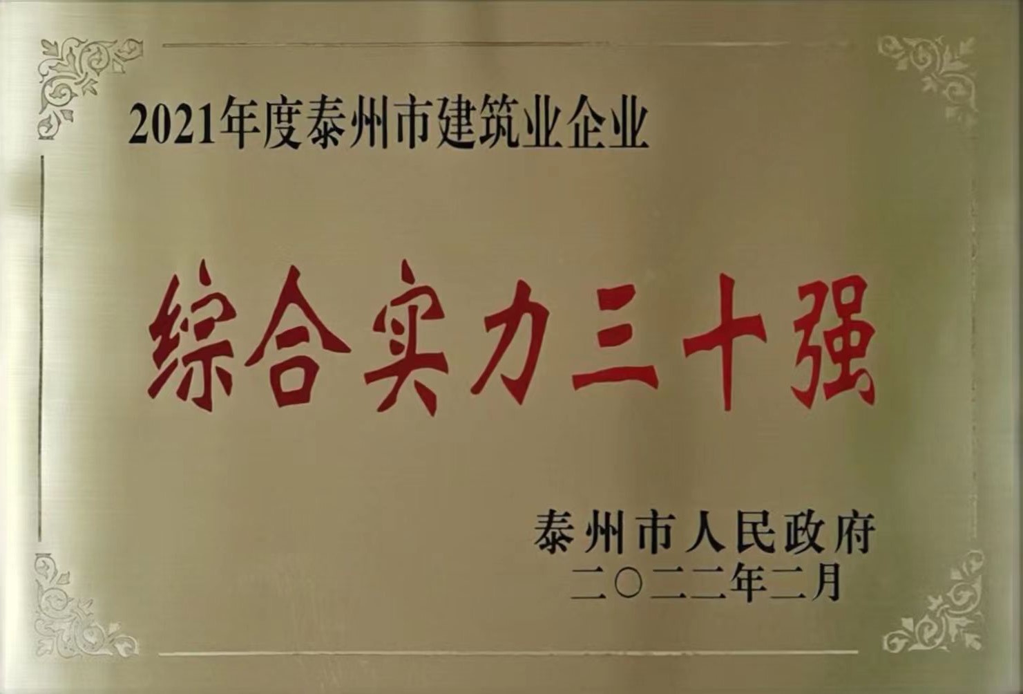 “江蘇省建筑業(yè)優(yōu)秀企業(yè)”、“江蘇省建筑業(yè)最具成長(zhǎng)性百?gòu)?qiáng)企業(yè)”,2016年被國(guó)家工商總局授予“國(guó)家級(jí)守信用重合同企業(yè)”,2015年被全國(guó)總工會(huì)授予“全國(guó)模范職工之家”稱(chēng)號(hào),2018年被中國(guó)建筑企業(yè)協(xié)會(huì)評(píng)為“2017年度建筑業(yè)AAA級(jí)信用企業(yè)”